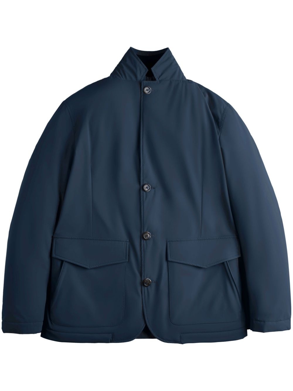 double-front lightweight jacket Highlights - Navy blue - Lightweight construction - Double layer - Front button and zip fastening - Mock neck - Notched lapels - Branded zip puller - Long sleeves - Two front flap pockets - Straight hem Made in Italy Composition Polyamide 64%, Polyurethane 21%, Elastane 15%