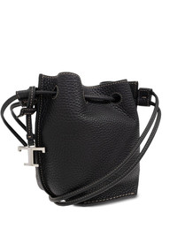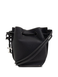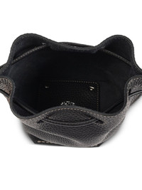 drawstring leather bucket bag Highlights - Black - Calf leather - Drawstring closure - Tonal stitching detail - Metallic logo charm - Shoulder strap Made in Italy Composition Outer: Calf Leather 100%