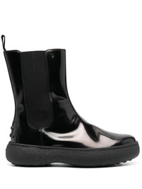 elasticated ankle boots black calf leather glossy finish elasticated side panels logo pull-tab at the heel pull-on style round toe branded heel counter branded insole chunky rubber sole Made in Italy Composition Lining: Calf Leather 100%, Fabric 100% Outer: Calf Leather 100%, Fabric 100% Sole: Rubber 100% SIZE & FIT Measurement HEEL 1.96 in(5 cm) HEIGHT 7.48 in(19 cm) PLATFORM 1.57 in(4 cm)