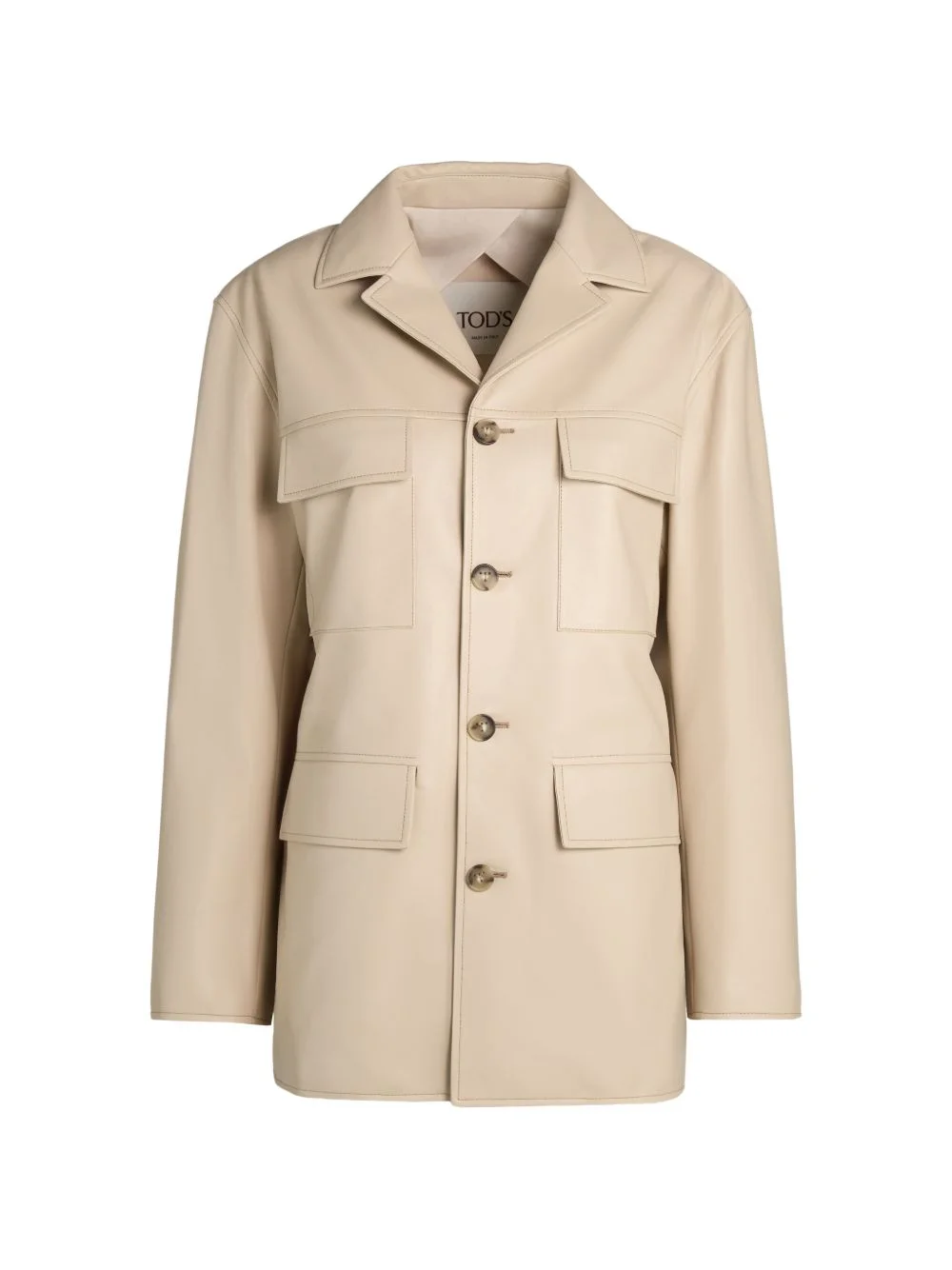 flap-pocket leather jacket Highlights - Cream - Button fastening - Flap pockets - Belt - Collared - Long sleeves Made in Italy Composition Calf Leather 100% Lining: Cotton 100%