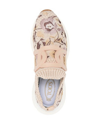 floral-embroidered slip-on sneakers Combining a modernist aesthetic with high-quality construction, Tod's presents these slip-on sneakers for AW23. They are crafted from lightweight stretch-knit and accented with the signature chain-link motif. Highlights - Light beige/multicolour - Knitted upper - Floral embroidery - Chain-link detailing - Round toe - Slip-on style - Branded insole - Pull-tab at the heel - Chunky rubber sole Made in Italy Composition Outer: Fabric 100% Lining: Fabric 100% Sole: Rubber 100% SIZE & FIT Measurement HEEL 1.96 in(5 cm) Sole height 0.98 in(2.5 cm)