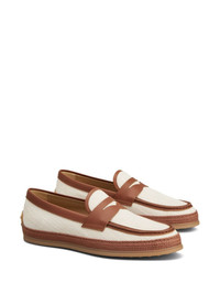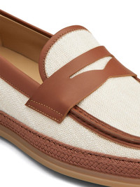 LOAFERS IN CANVAS AND LEATHER - OFF WHITE, BROWN