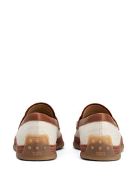 Gommino colour block loafers Highlights - White/brown - Suede/leather - Colour-block design - Almond toe - Signature gommino sole - Tonal stitching - Slip-on style Made in Italy Composition Outer: Calf Leather 100%, Viscose 70%, Linen/Flax 30% Lining: Calf Leather 100% Sole: Rubber 100%
