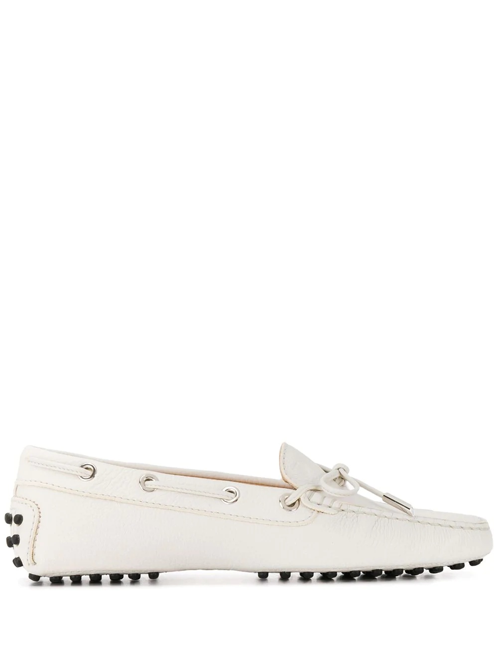 Gommino driving shoes Combining a modernist aesthetic with high-quality construction and round-the-clock comfort, Tod's creates staple pieces that blend seamlessly into everyday life. Case in point: these white Gommino driving shoes. Eternal classics. Highlights - White - Leather/rubber - Round toe - Pussy-bow fastening - Slip-on style - Branded insole - Rubber sole Made in Italy Composition Outer: Calf Leather 100% Lining: Calf Leather 100% Sole: Calf Leather 100%, Rubber 100% SIZE & FIT Measurement HEEL 0.39 in(1 cm)