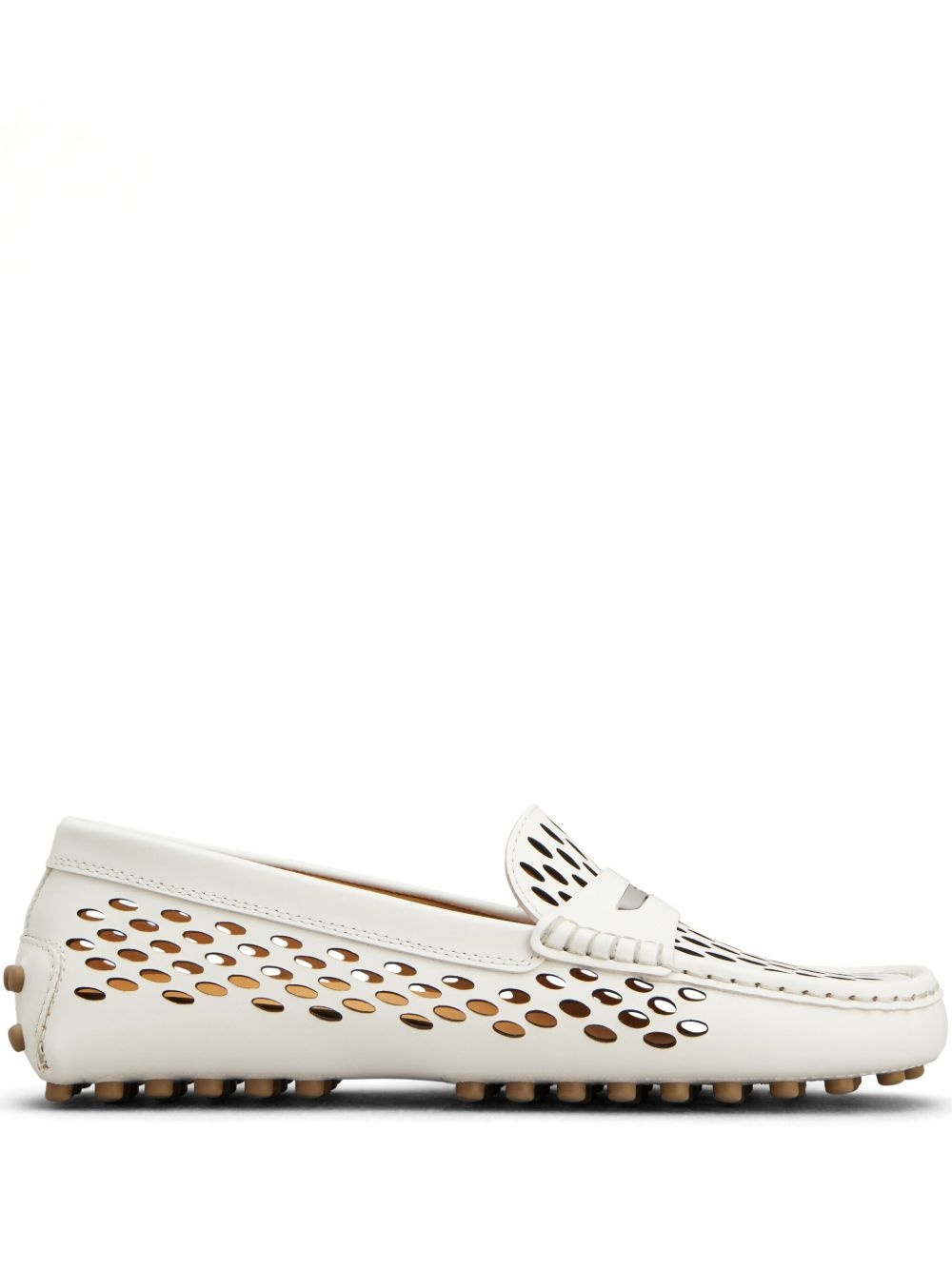 Gommino loafers Highlights - White - Slip-on style - Silver-tone logo plaque - Cut-out detailing - Signature gommino sole Made in Italy Composition Sole: Rubber 100%, CALFSKIN 100% Lining: CALFSKIN 100% Outer: CALFSKIN 100%