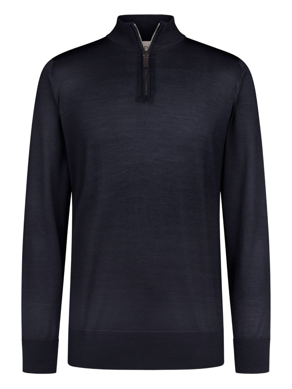 half-zip sweater Highlights - Navy blue - Half zip fastening - High neck - Long sleeves - Ribbed cuffs - Ribbed hem Made in Italy Composition Wool 100% Washing instructions Read Manufacturer Guidelines