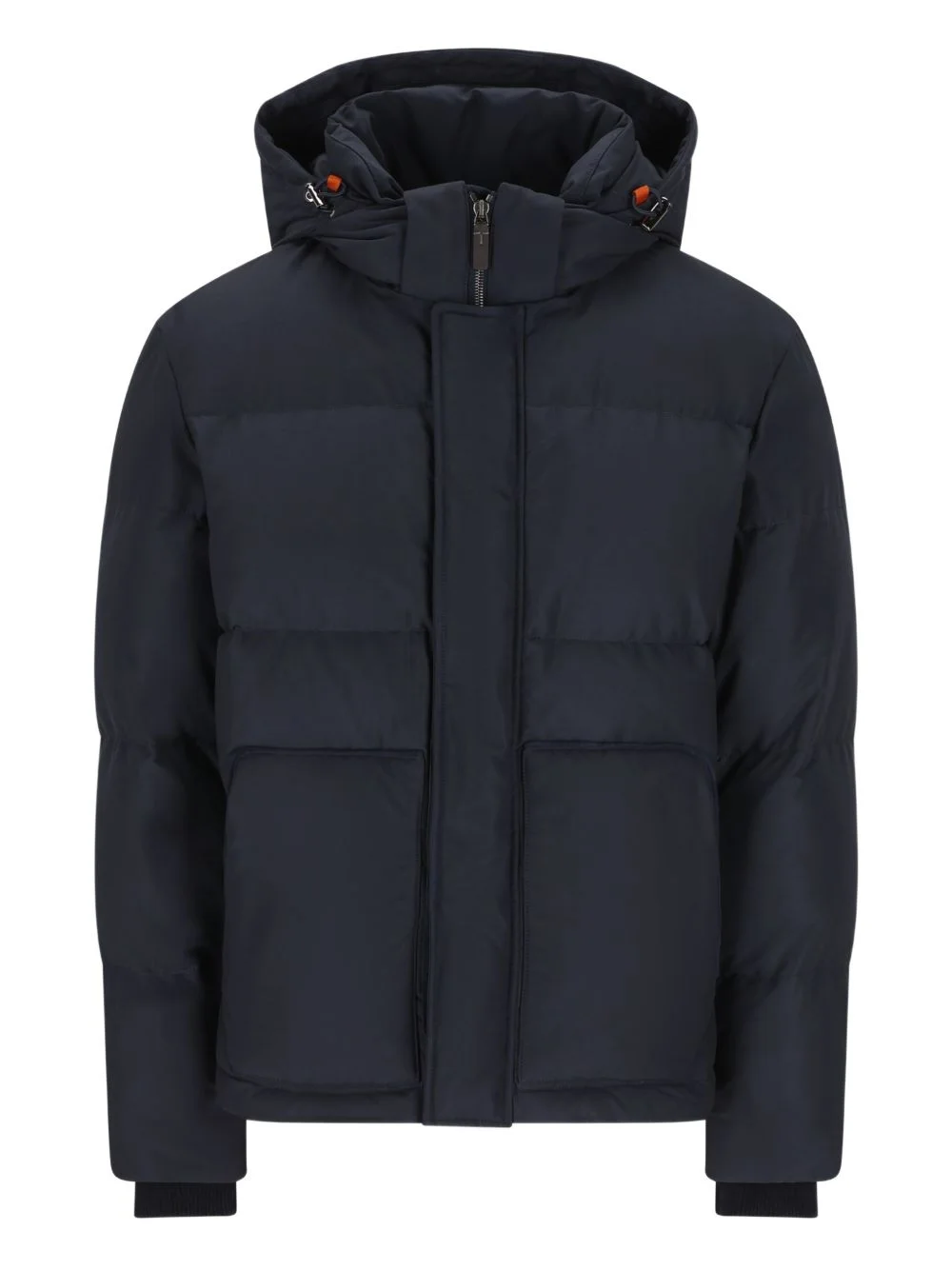 hooded pocket jacket Highlights - Blue - Front zip fastening - Adjustable hood - Long sleeves - Ribbed cuffs - Pockets Made in Italy Composition Outer: Calf Leather 100%, Polyamide 51%, Polyester 49% Lining: Cotton 100%, Polyester 100%, Down 90%, Feather 10% Washing instructions Read Manufacturer Guidelines
