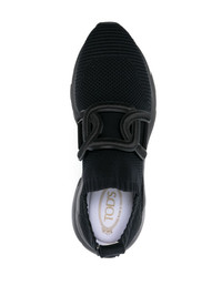 Kate slip-on sneakers Enduring quality goes hand in hand with comfort for Tod's, as demonstrated by these Kate slip-on sneakers. Resting atop a chunky rubber sole, they boast an elasticated technical knit upper embellished with the brand's signature leather chain. Highlights - Black - Knitted upper - Applique logo - Almond toe - Slip-on style - Pull-tab at the heel - Branded insole - Chunky rubber sole Made in Italy Composition Lining: Fabric 100% Outer: Fabric 100% Sole: Rubber 100% SIZE & FIT Measurement HEEL 1.57 in(4 cm) Sole height 0.78 in(2 cm)