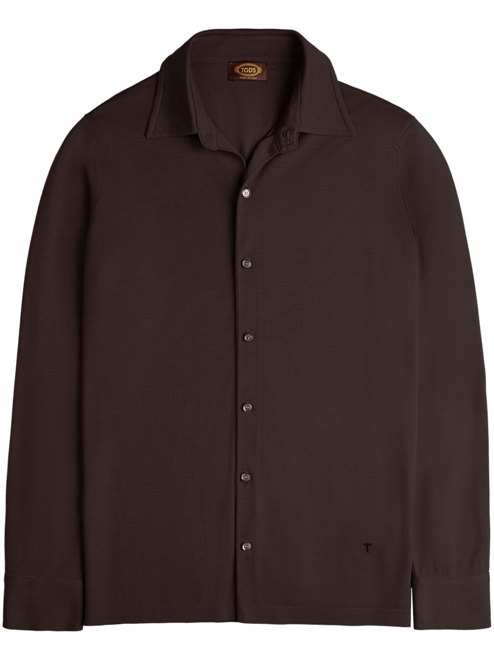knitted shirt Highlights - Coffee brown - Front button fastening - Ribbed cuffs - Embroidered logo to the front - Long sleeves Made in Italy Composition Wool 100% Washing instructions Read Manufacturer Guidelines