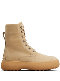 lace-up leather combat boots Highlights - Beige - Calf leather - Embossed logo to the rear - Round toe - Front lace-up fastening - Side zip fastening - Pull-tab at the heel - Chunky rubber sole Made in Italy Composition Leather 100%