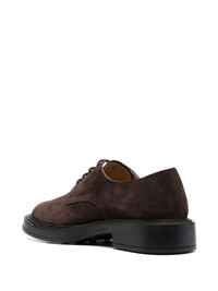 suede Derby shoes Tod's boasts a rich Italian shoe-making heritage, so footwear designs like these Derbies are made with great attention to craft. They’re cut from velvety suede in a deep brown and have coloured laces to match. The pebbled soles are a house signature. Highlights - Cognac brown - Calf suede - Calf leather - Almond toe - Front lace-up fastening - Branded leather insole - Studded sole Made in Italy Composition Outer: Calf Suede 100% Lining: Calf Leather 100% Sole: Rubber 100% SIZE & FIT Measurement HEEL 1.57 in(4 cm) Sole height 0.78 in(2 cm)