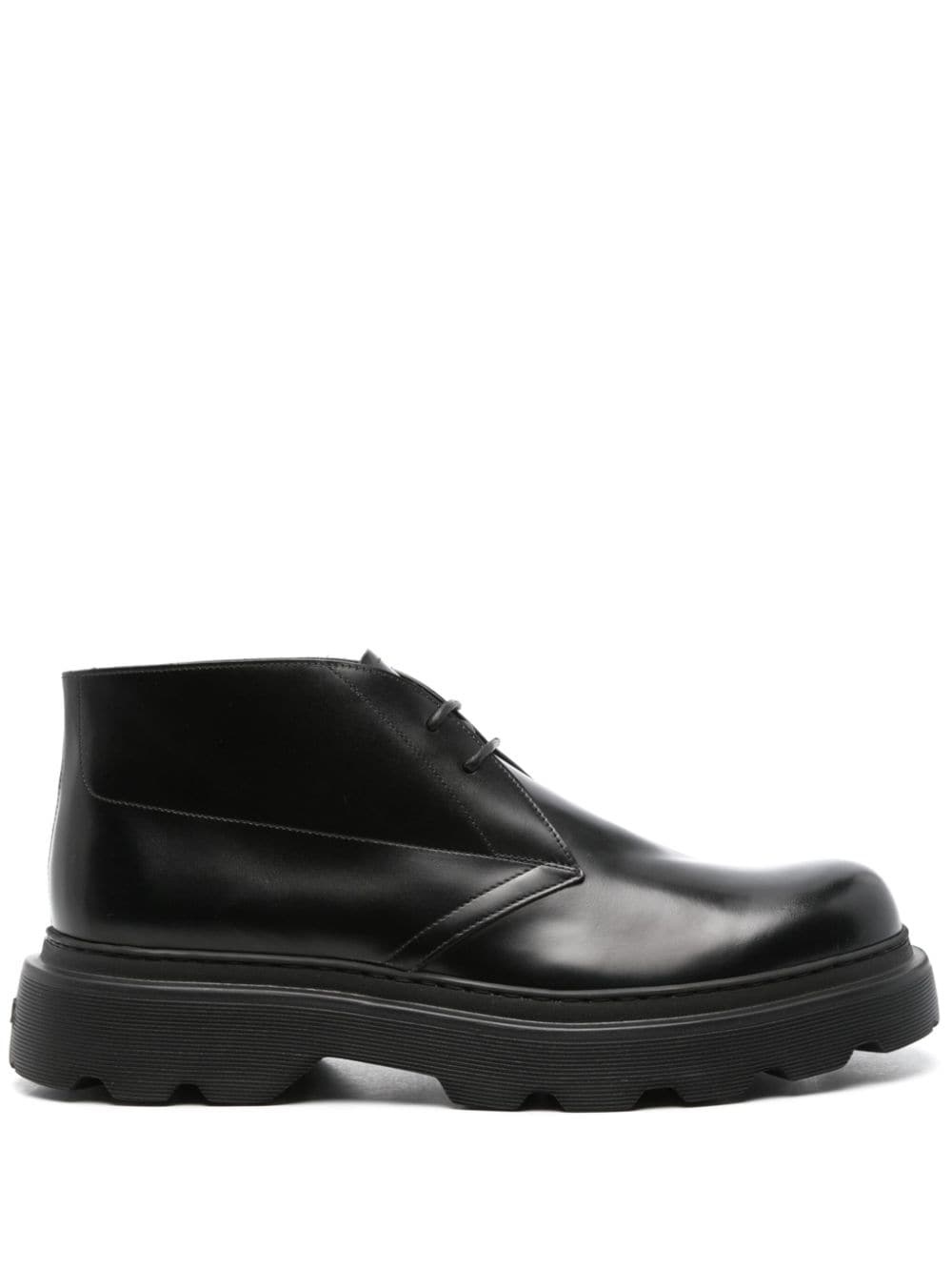 leather ankle boots Highlights - Black - Calf leather - Brushed finish - Logo-debossed tongue - Embossed logo to the rear - Ankle-length - Front lace-up fastening - Round toe - Branded leather insole - Chunky rubber sole Made in Italy Composition Lining: Calf Leather 100% Sole: Rubber 100% Outer: Calf Leather 100% SIZE & FIT Measurement HEEL 1.96 in(5 cm) HEIGHT 3.54 in(9 cm) Sole height 1.37 in(3.5 cm)
