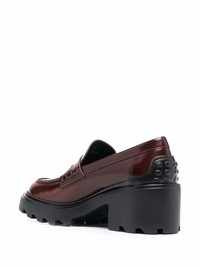 leather penny loafers dark brown leather high-shine finish penny slot round toe mid block heel branded insole ridged rubber sole Made in Italy Composition Lining: Leather 100% Outer: Leather 100% Sole: Rubber 100% SIZE & FIT Measurement HEEL 2.36 in(6 cm) Sole height 0.98 in(2.5 cm)