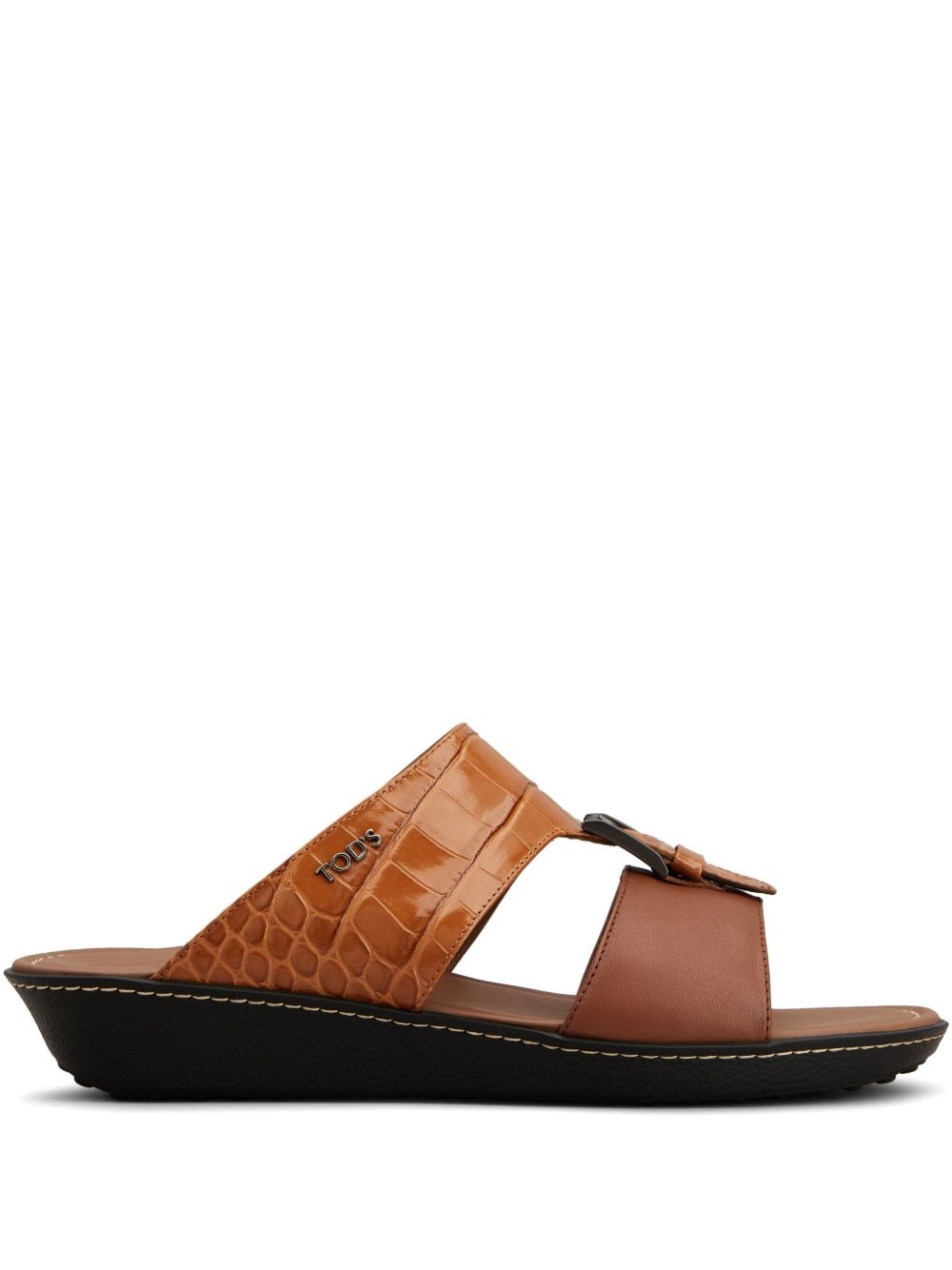 leather sandals Highlights - Brown - Slip-on style - Rubber sole - Decorative buckle detail - Logo plaque Made in Italy Composition Outer: Calf Leather 100% Sole: Rubber 100% Lining: Calf Leather 100%