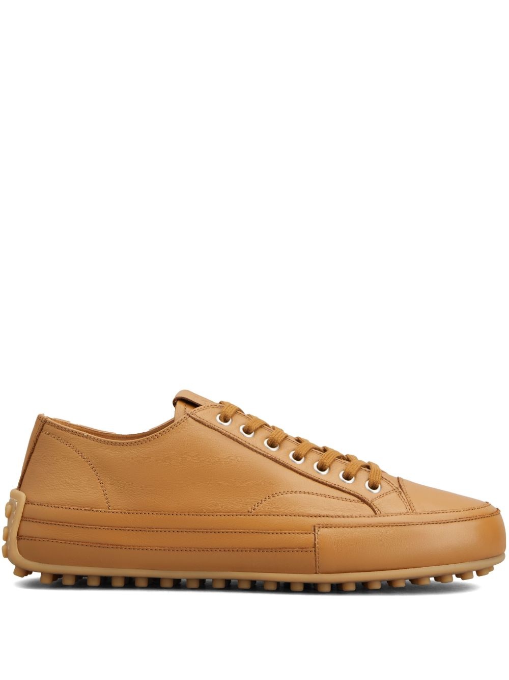 leather sneakers Highlights - Brown - Front lace-up fastening - Rubber sole - Round toe - Logo patch at the tongue Made in Italy Composition Lining: Calf Leather 100% Outer: Calf Leather 100% Sole: Rubber 100%