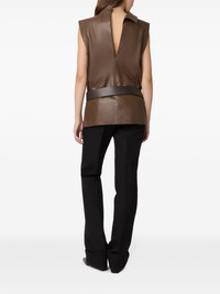 leather top Highlights - Coffee brown - Calf leather - High neck - V-back - Sleeveless - Adjustable fit - Straight hem Made in Italy Composition Calf Leather 100%