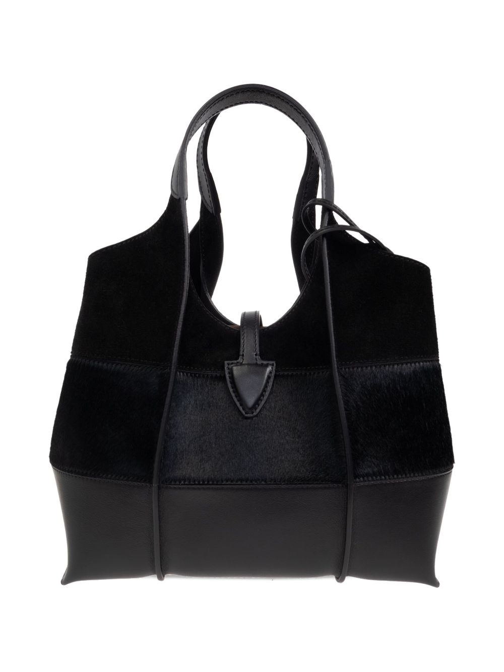 leather tote bag Highlights - Black - Calf leather - T-bar fastening - Two top handles - Detachable shoulder strap Made in Italy Composition Outer: Calf Leather 100% SIZE & FIT Measurement HEIGHT 7.48 in(19 cm) WIDTH 9.05 in(23 cm)