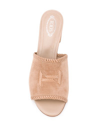 logo embroidered 55mm sandals Combining a modernist aesthetic with high-quality construction and round-the-clock comfort, Tod's creates staple pieces that blend seamlessly into everyday life. Case in point: these beige logo suede sandals. A summer essential. Highlights - Beige - Suede/leather - Open toe - Slip-on style - Branded insole - Low block heel Made in Italy Composition Outer: Suede 100% Lining: Leather 100% Sole: Leather 100% SIZE & FIT Measurement HEEL 2.16 in(5.5 cm) Sole height 0.39 in(1 cm)