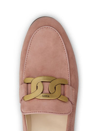 logo-engraved suede loafers Highlights - Blush pink - Suede - Round toe - Piped-trim detailing - Logo-engraved gold-tone hardware - Chain-link detailing - Branded leather insole - Low block heel - Leather sole Made in Italy Composition Suede 100% SIZE & FIT Measurement HEEL 0.78 in(2 cm) Sole height 0.39 in(1 cm)