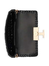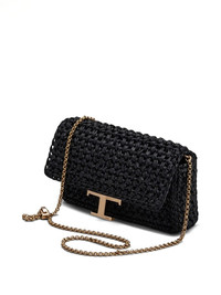 T TIMELESS FLAP BAG IN RAFFIA MICRO - BLACK