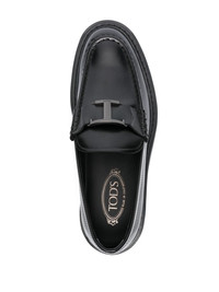 logo-plaque leather loafers In keeping with Tod’s refined aesthetic, these loafers are crafted from buttery-smooth black leather. The classic penny bar is reimagined with the brand’s T Timeless logo plaque in burnished silver-tone hardware. Highlights - Black - Calf leather - Polished finish - Logo-engraved silver-tone hardware - Tonal stitching - Almond toe - Slip-on style - Branded leather insole - Rubber outsole Made in Italy Composition Lining: Calf Leather 100% Outer: Calf Leather 100% Sole: Rubber 100% SIZE & FIT Measurement HEEL 1.77 in(4.5 cm) Sole height 0.82 in(2.1 cm)