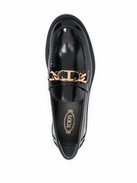 logo-plaque leather loafers jet-black leather gold-tone hardware logo plaque round toe low heel Made in Italy Composition Leather 100% SIZE & FIT Measurement HEEL 1.18 in(3 cm)