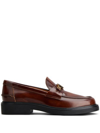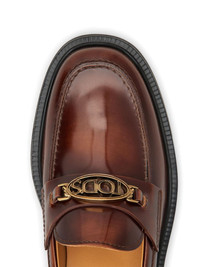 logo-plaque leather loafers Committed to presenting timeless pieces with supreme quality, TOD'S offers these leather loafers. This brown pair presents a high-shine finish and is distinguished by the gold-tone logo plaque at the top. Highlights - Brown - Calf leather - High-shine finish - Logo plaque - Slip-on style - Almond toe - Stacked rubber sole Made in Italy Composition Leather 100% SIZE & FIT Measurement Sole height 0.55 in(1.4 cm) HEEL 1.18 in(3 cm)