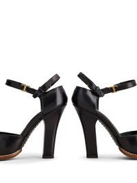 logo-plaque leather pumps Highlights - Black - Leather - Logo plaque - Buckle-fastening ankle strap - Almond toe - Branded insole - High heel Made in Italy Composition Sole: Leather 100% Outer: Leather 100% Lining: Leather 100%