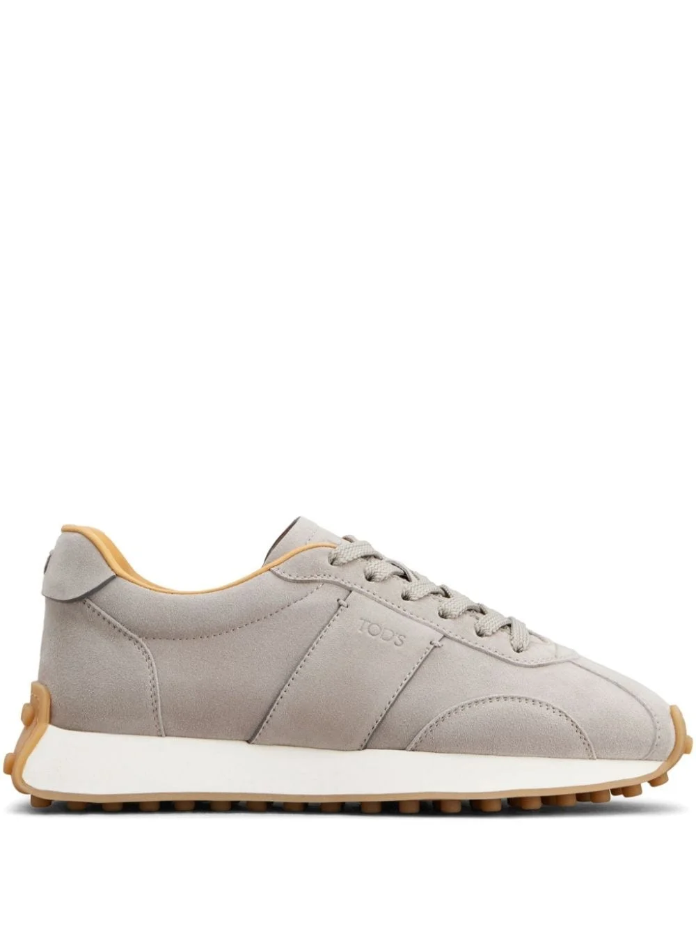 logo-stamp suede lace-up sneakers Highlights - Taupe grey - Calf suede - Panelled design - Logo stamp at side - Logo-embossed tongue - Branded heel counter - Round toe - Front lace-up fastening - Branded insole - Ridged rubber sole Made in Italy Composition Suede 100%