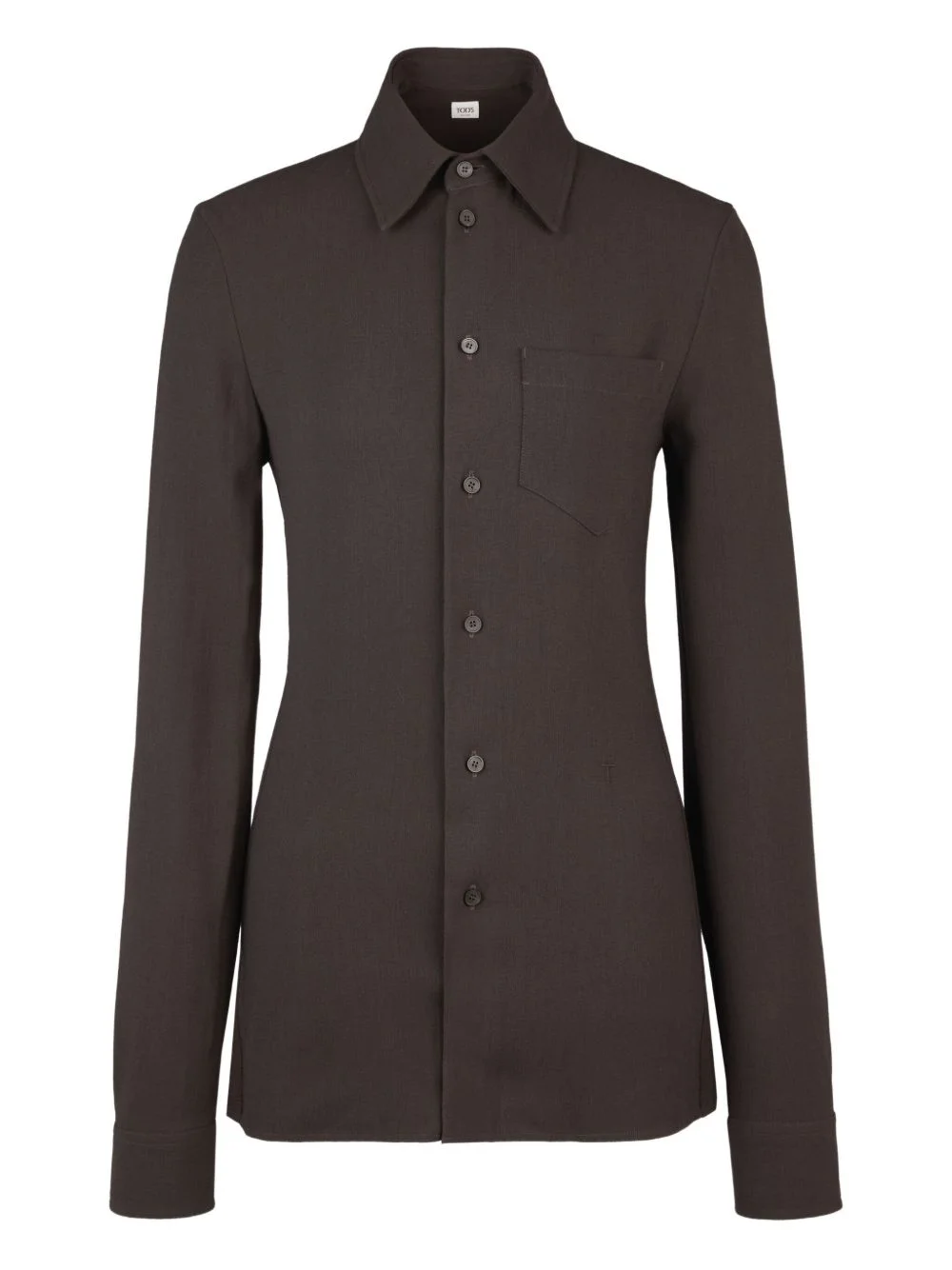 long-sleeve buttoned shirt Highlights - Dark-brown - Long sleeves - Button fastening - Chest pocket - Straight hemline Made in Italy Composition Fabric 100% Washing instructions Read Manufacturer Guidelines
