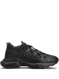 SNEAKERS IN LEATHER AND TECHNICAL FABRIC - BLACK