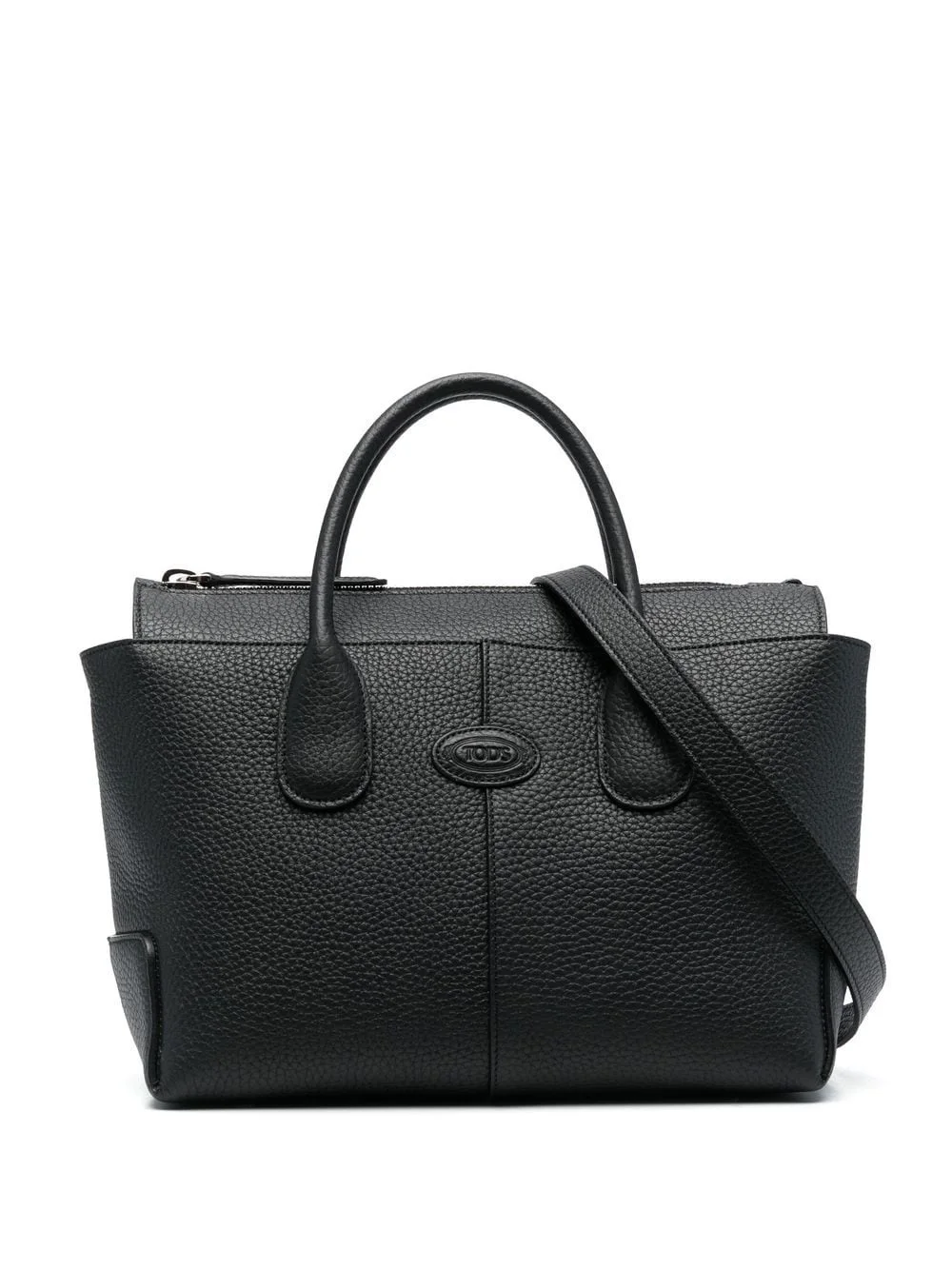medium Di leather tote bag Defined by a single central detail and a matching logo embossed to the front, Tod's Di bag is a signature style from the brand's handbag line that conveys the label's expert craftsmanship and minimalist approach. This iteration arrives in a grained leather construction, flaunting a classic black colourway. Made in Italy Composition Outer: Calf Leather 100% SIZE & FIT Model measurements Height 5 ft 9 in(1.75 m) Bust/Chest 31.49 in(80 cm) Hips 34.05 in(86.5 cm) Waist 24.21 in(61.5 cm) Measurement DEPTH 5.9 in(15 cm) HANDLE 4.72 in(12 cm) HEIGHT 8.26 in(21 cm) STRAP 18.11 in(46 cm) WIDTH 12.59 in(32 cm)