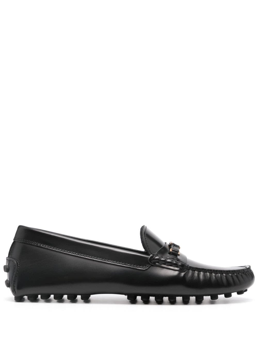 moc-stitching leather insole Highlights - Black - Calf leather - Round toe - Moc stitching - Logo-engraved gold-tone hardware - Branded leather insole - Segmented rubber sole - Slip-on style - This piece comes complete with a protective dust bag. Made in Italy Composition Lining: Calf Leather 100% Sole: Calf Leather 100%, Rubber 100% Outer: Calf Leather 100% SIZE & FIT Measurement HEEL 0.39 in(1 cm)