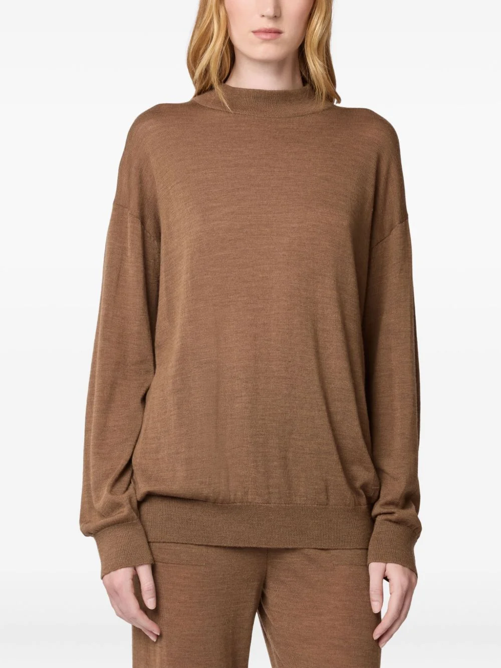 ROUND-NECK PULLOVER IN WOOL - BROWN