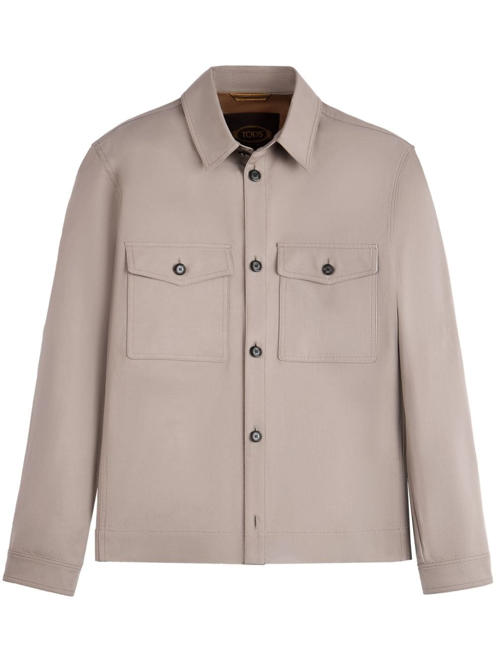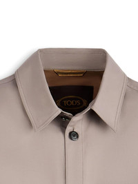 over shirt jacket Highlights - Grey - Cotton-linen blend - Logo patch to the rear - Classic collar - Two chest flap pockets - Long sleeves - Buttoned cuffs - Front button fastening - Straight hem Made in Italy Composition Cotton 73%, Linen/Flax 27%