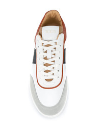 panelled low-top sneakers Put your best foot forward in Tod's. Offering both faultless style and comfort, these panelled low-top sneakers are a winning pair. Make space in your collection. Highlights - White/brown/black - Leather - Panelled design - Logo patch at the tongue - Round toe - Front lace-up fastening - Flat rubber sole Made in Italy Composition Outer: Leather 100%, Suede 100% Lining: Leather 100% Sole: Rubber 100% SIZE & FIT Measurement HEEL 0.98 in(2.5 cm) Sole height 0.78 in(2 cm)