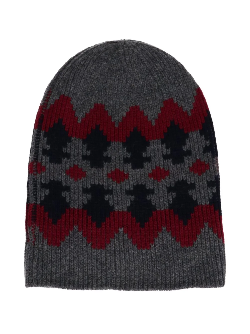 patterned ribbed beanie hat Highlights - Grey and burgundy - Ribbed texture - Geometric pattern Made in Italy Composition Fabric 100%