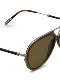 pilot-frame sunglasses Highlights - Barley brown - Uv-protective lenses - Brown tinted lenses - Double bridge - These glasses come with a protective case. Made in Italy Composition Metal 100%, Acetate 100%, Leather 100% SIZE & FIT Measurement Arm Length 5.7 in(14.5 cm) Bridge Width 0.62 in(1.6 cm) Lens Diameter 2.28 in(5.8 cm)