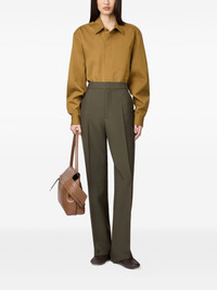 pleated high-waisted trousers Highlights - Olive green - High waist - Pleated front - Straight leg - Front pockets - Back welt pocket Made in Italy Composition Fabric 100% Washing instructions Read Manufacturer Guidelines