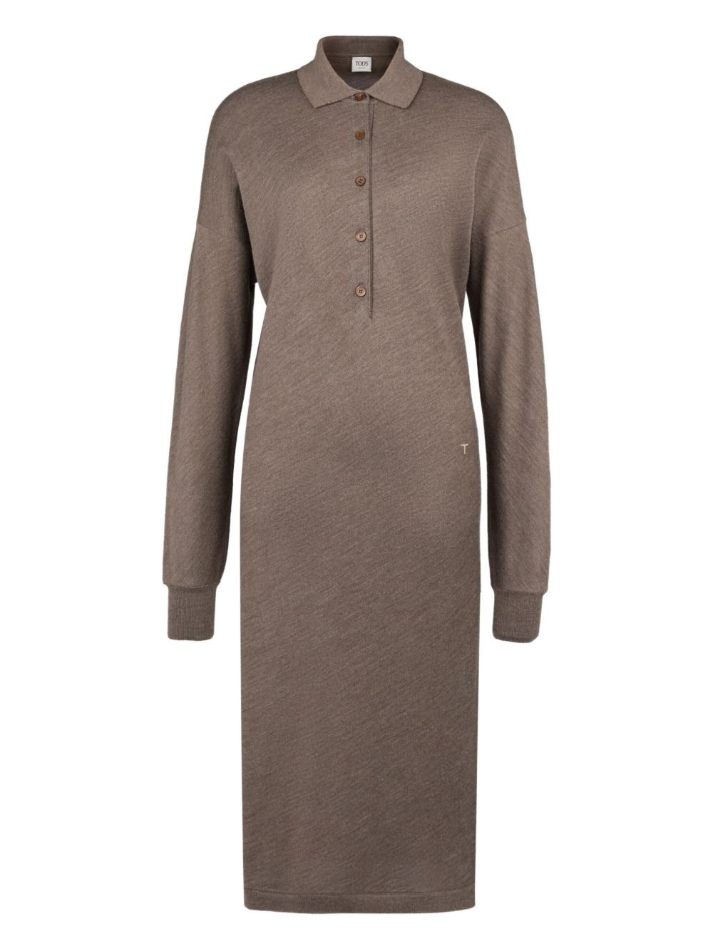 polo-neck knitted dress Highlights - Brown - Polo neck - Button fastening - Long sleeves - Slim cuffs - Embroidered logo Made in Italy Composition Virgin Wool 70%, Silk 30% Washing instructions Read Manufacturer Guidelines
