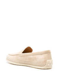 slip-on suede loafers Made in Italy, Tod's loafers are defined by the espadrille-inspired woven raffia band that connects the suede upper with the signature Gommino pebbled rubber sole. Highlights - Sand beige - Calf suede - Slip-on style - Piped-trim detailing - Braided edge - Round toe - Branded leather insole - Flat rubber sole Made in Italy Composition Suede 100% SIZE & FIT Measurement HEEL 0.78 in(2 cm) Sole height 0.59 in(1.5 cm)