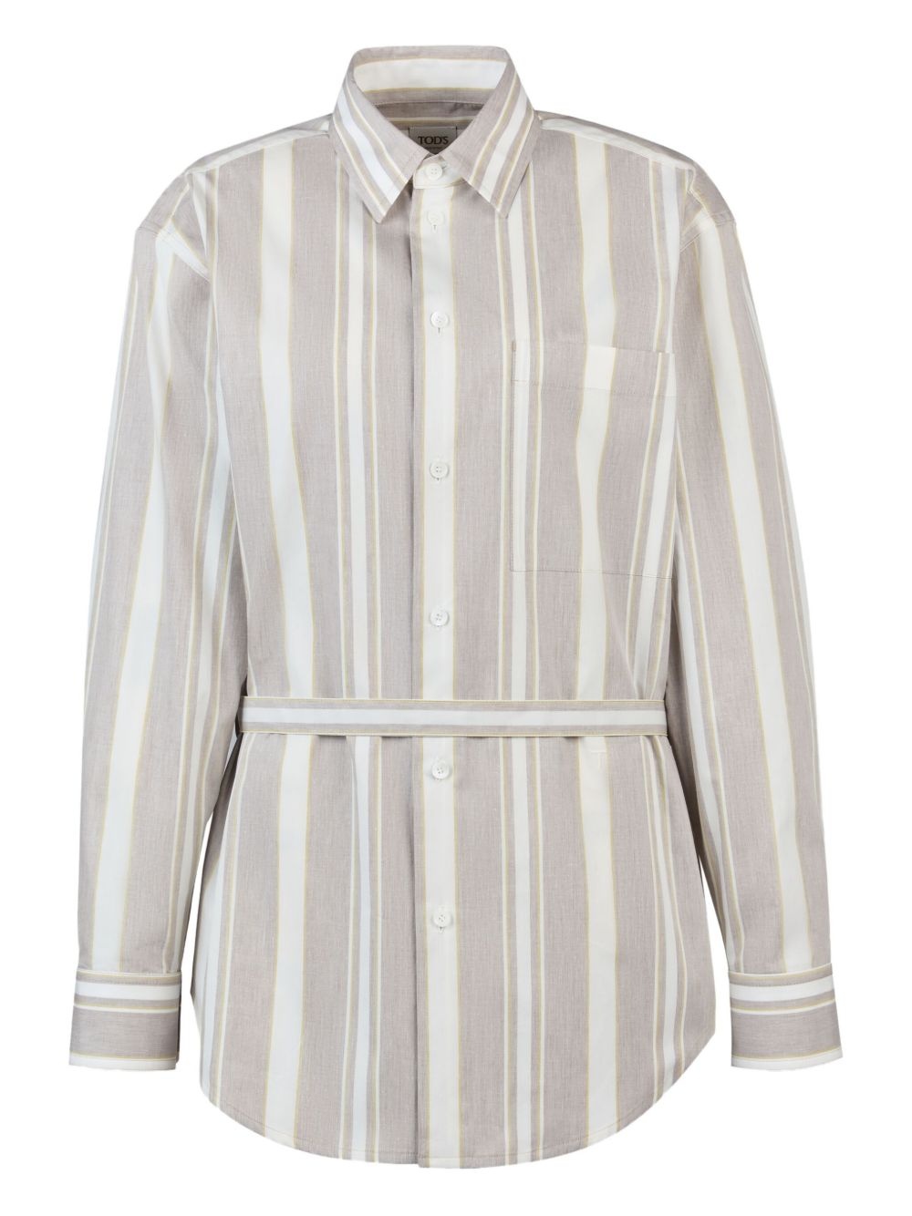 striped belted shirt Highlights - Light grey - Vertical stripe pattern - Button fastening - Chest pocket detail - Belted waist - Long sleeves Made in Italy Composition Cotton 100% Washing instructions Read Manufacturer Guidelines