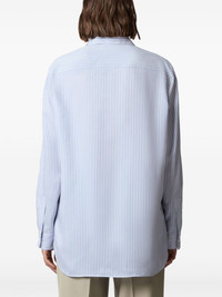 striped poplin shirt Highlights - Blue/white - Poplin texture - Vertical stripe pattern - Classic collar - Chest patch pocket - Front button fastening - Long sleeves - Buttoned cuffs - Curved hem Made in Italy Composition Cupro 100% Washing instructions Read Manufacturer Guidelines