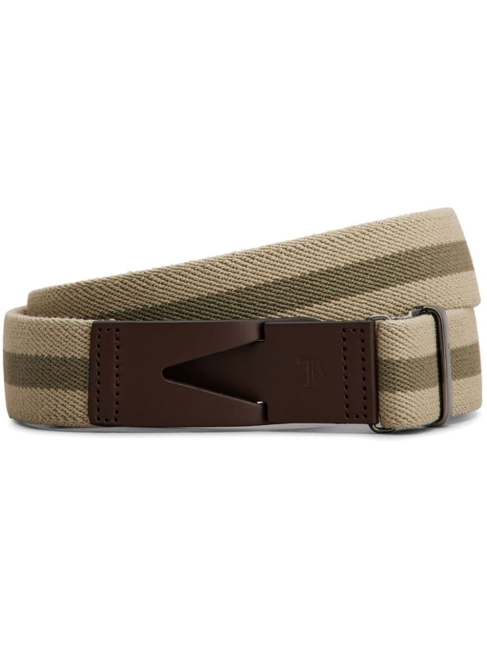 striped snap-buckle belt Highlights - Beige/sage green - Canvas/leather - Horizontal stripe pattern - Debossed logo to the front - Snap buckle - Adjustable fit Made in Italy Composition Outer: Fabric 90%, Leather 10% SIZE & FIT Measurement WIDTH 1.37 in(3.5 cm)