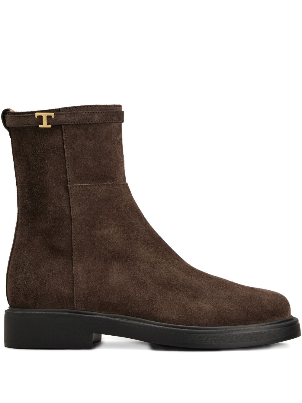 suede ankle boots Highlights - Brown - Side zip fastening - Gold-tone logo detail - Flat sole - Rounded toe Made in Italy Composition Sole: Rubber 100% Lining: Calf Leather 100% Outer: Calf Suede 100%