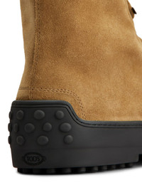 suede combat boots Highlights - Cognac brown - Front lace-up fastening - Flat rubber sole - Debossed logo to the side - Round toe Made in Italy Composition Sole: Rubber 100% Lining: Calf Leather 100% Outer: Calf Suede 100%