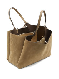 suede leather shopping bag Highlights - Beige - Suede leather - Flat handles - Embossed logo - Removable pendant charm Made in Italy Composition Outer: Suede 100% SIZE & FIT Measurement DEPTH 7.48 in(19 cm) HEIGHT 10.23 in(26 cm) WIDTH 16.14 in(41 cm)