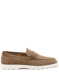 suede loafers Highlights - Almond beige - Slip-on style - Logo plaque - Penny slot - Contrasting rubber sole Made in Italy Composition Lining: Calf Leather 100% Outer: Calf Suede 100% Sole: Rubber 100%