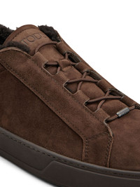 suede sneakers Highlights - Chocolate brown - Front lace-up fastening - Flat sole - Branded insole - Round toe Made in Italy Composition Outer: Goat Skin 100% Sole: Rubber 100% Lining: Sheep Skin/Shearling 100%