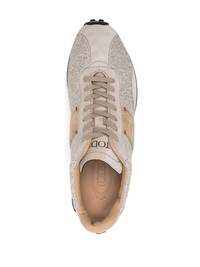 T sneakers Highlights - Sand beige/nickel grey - Knitted upper - Front lace-up fastening - Contrasting heel counter - Suede panelling - Debossed logo to the side - Logo-print tongue - Round toe - Signature gommino sole Made in Italy Composition Outer: Fabric 100%, Calf Suede 100% Sole: Rubber 100% Lining: Calf Leather 100% SIZE & FIT Measurement HEEL 0.98 in(2.5 cm) Sole height 0.78 in(2 cm)